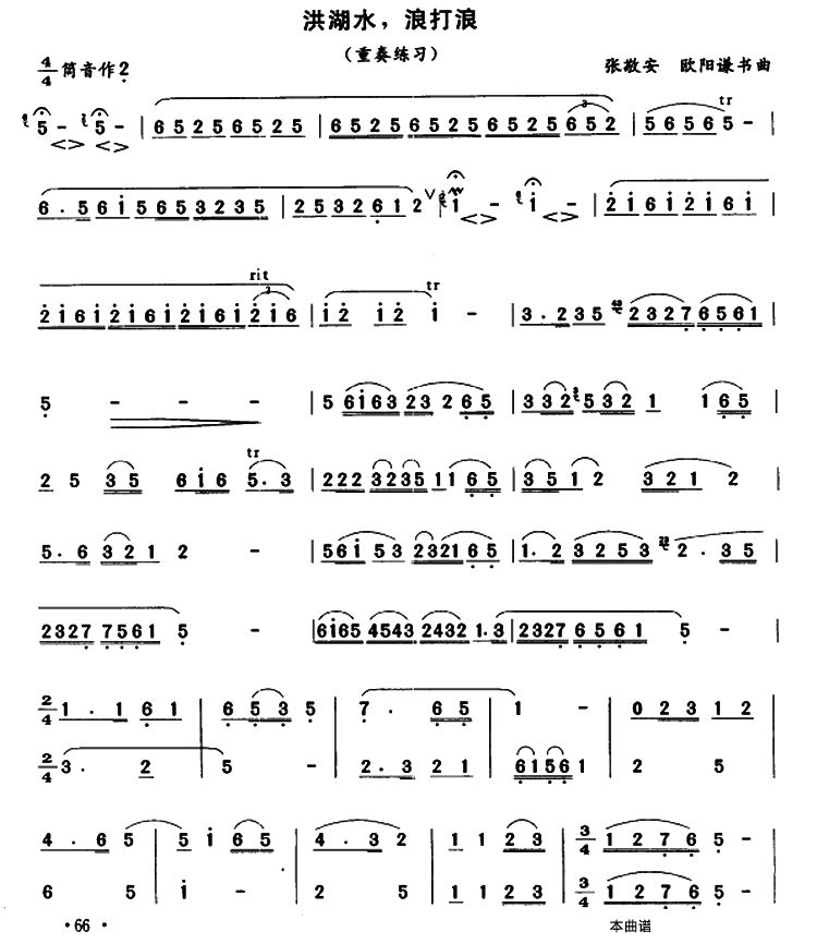 > 洪湖水 浪打浪笛