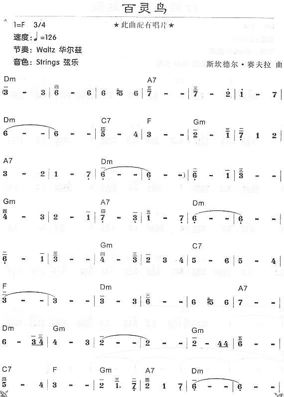 - [歌谱] 百灵鸟