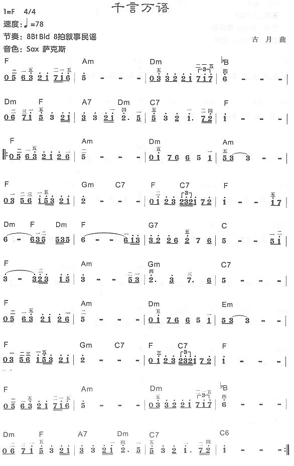- [歌谱,古筝谱,扬琴谱] 千言万语