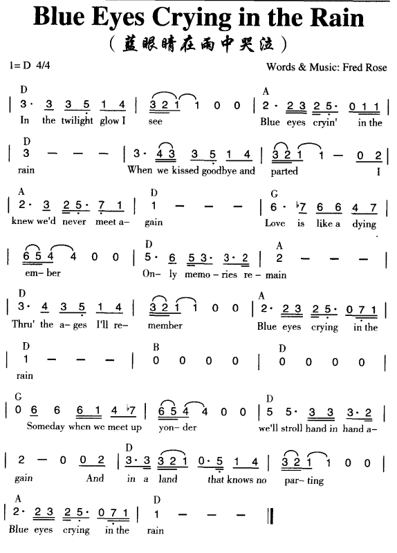 Blue Eyes Crying in the Rain 蓝眼睛在雨中哭泣