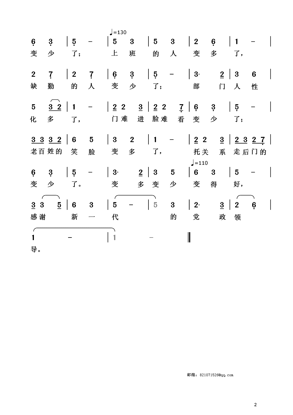 - [歌谱] 山村变了样