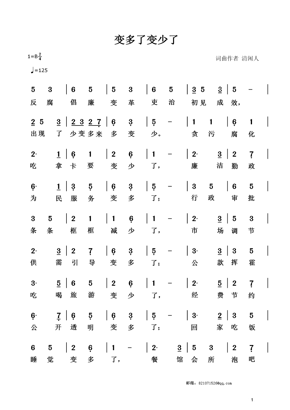 - [歌谱] 多了 少了