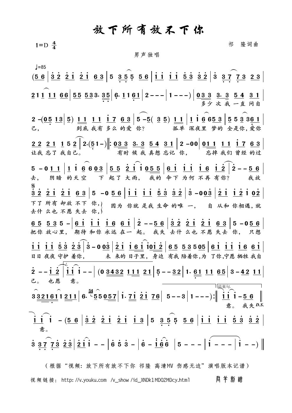 放下所有放不下你 视频 放下所有放不下你 祁隆 高清MV 伤感无边 本
