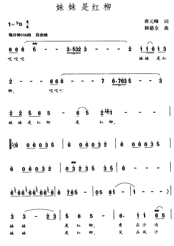 - [歌谱] 22首中国民歌 之1 红彩妹妹
