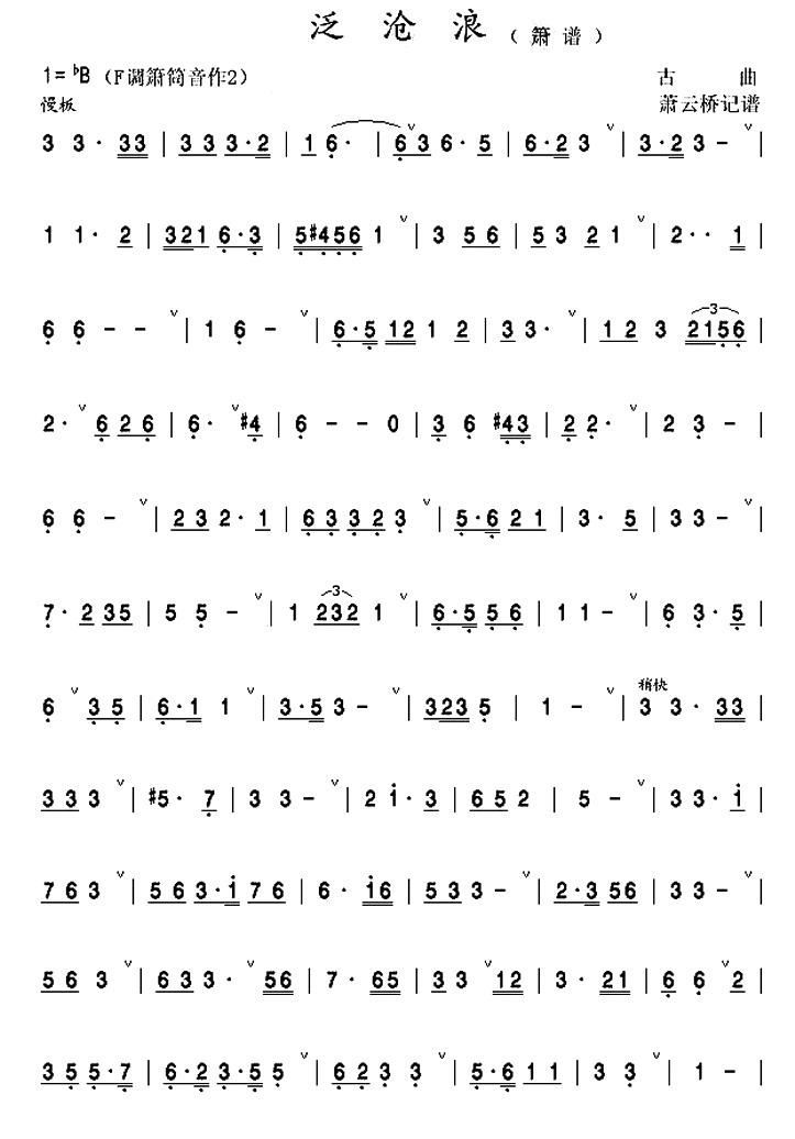 - [笛子谱,箫谱] 渔舟唱晚 箫 笛箫