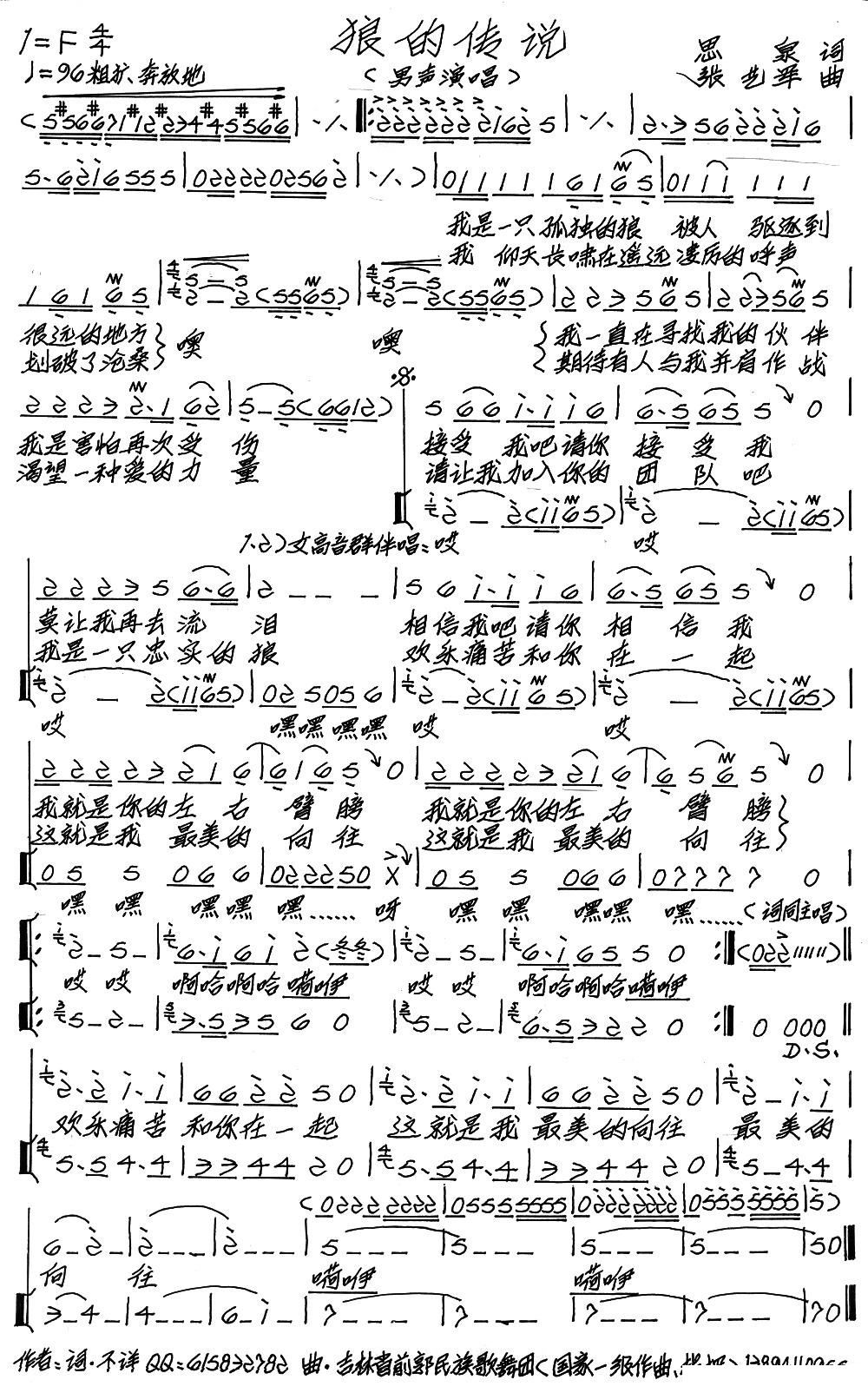 - [歌谱] 北方的狼