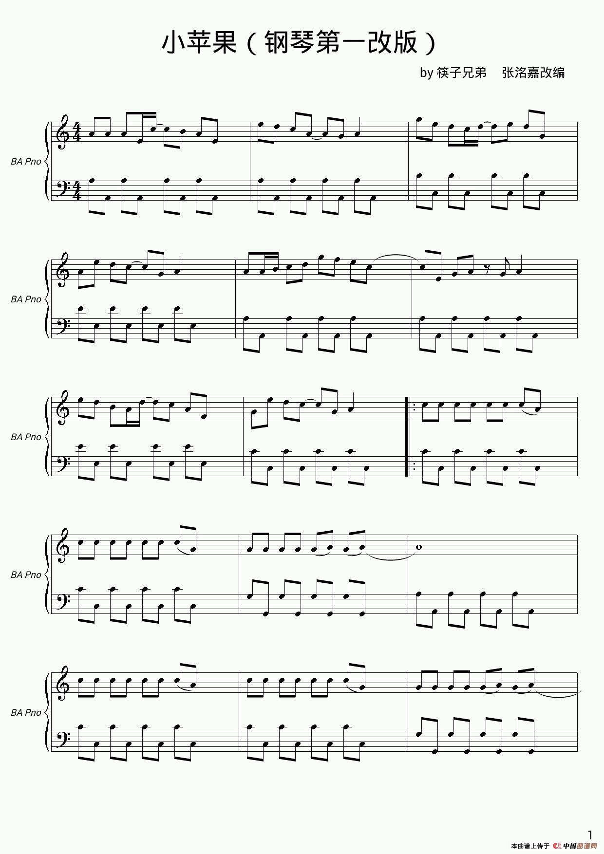- [钢琴谱] 小苹果