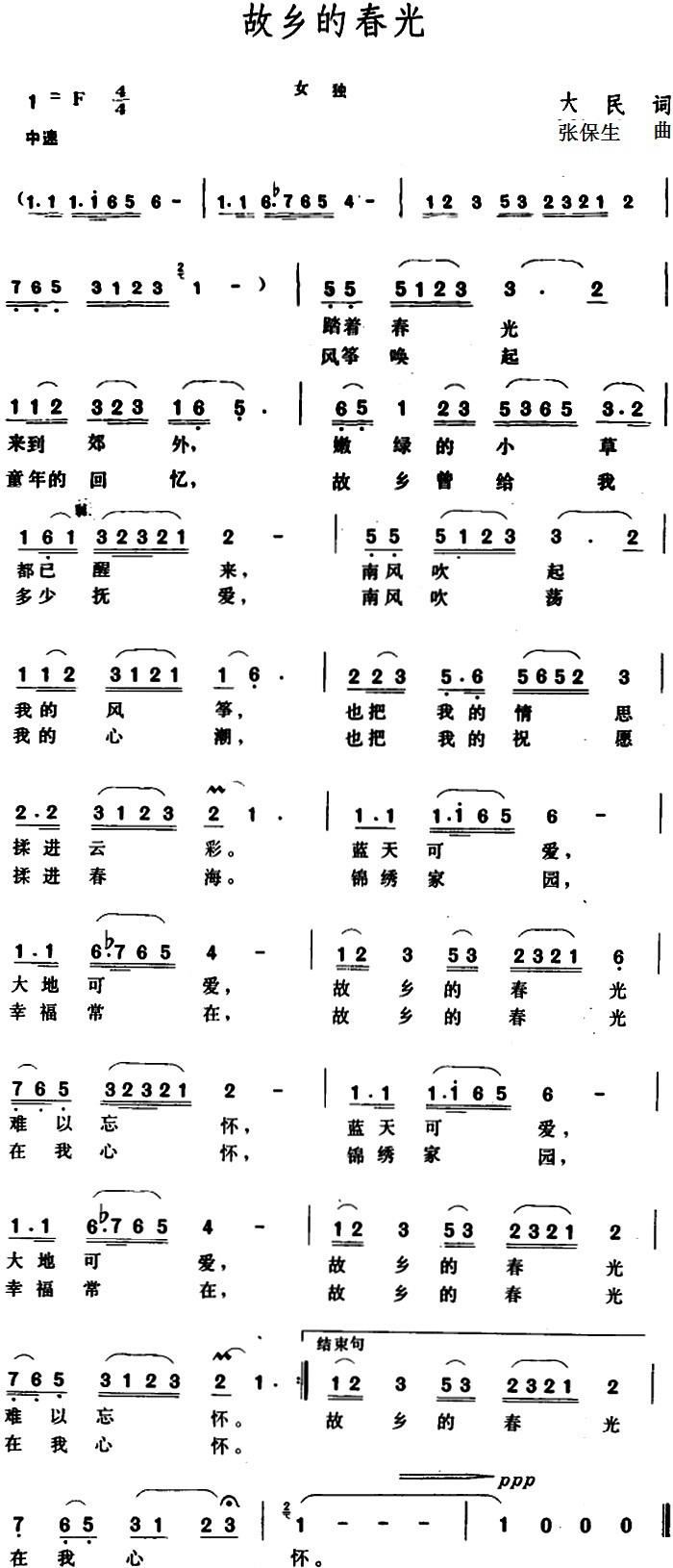 - [歌谱] 我心中的祖国