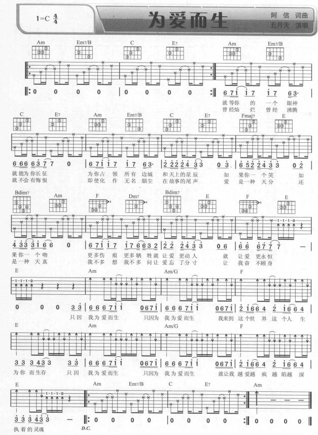 为爱而生 D调