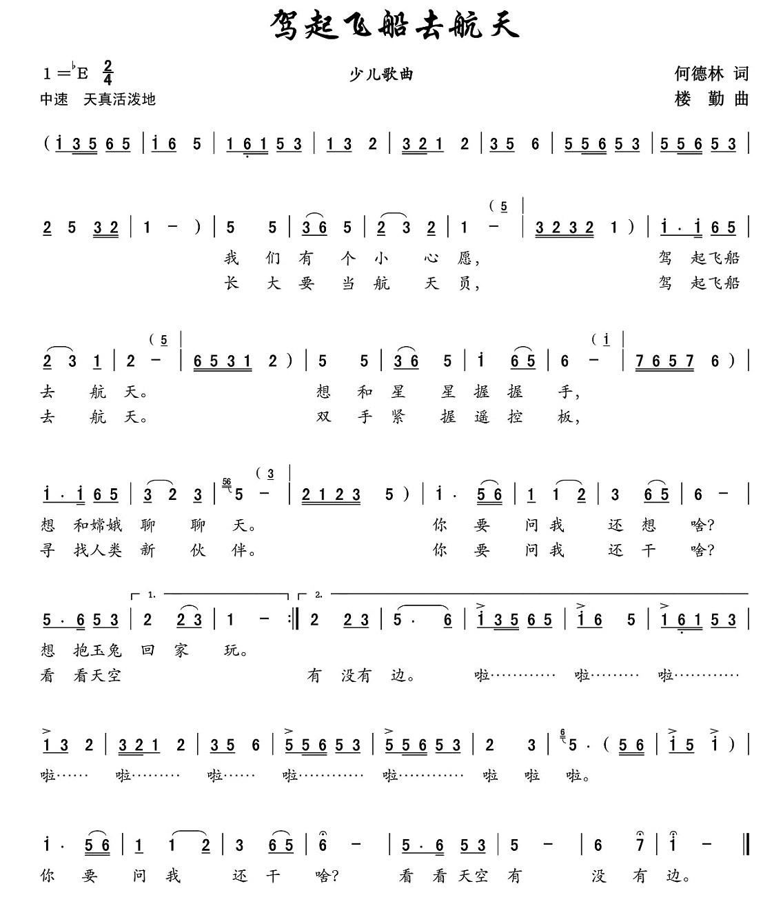 - [歌谱] 我驾飞船上蓝天 儿童歌