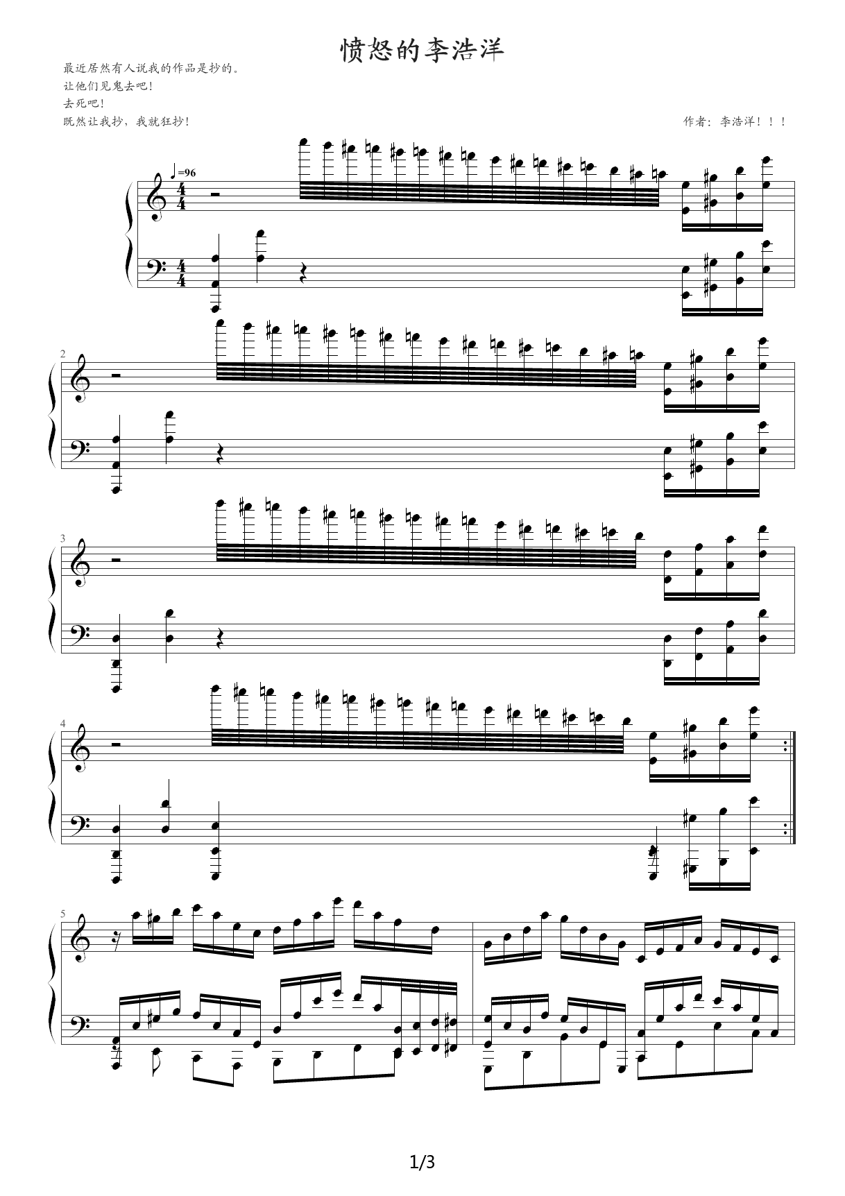 愤怒的李浩洋 那些什么的都去死吧 C调