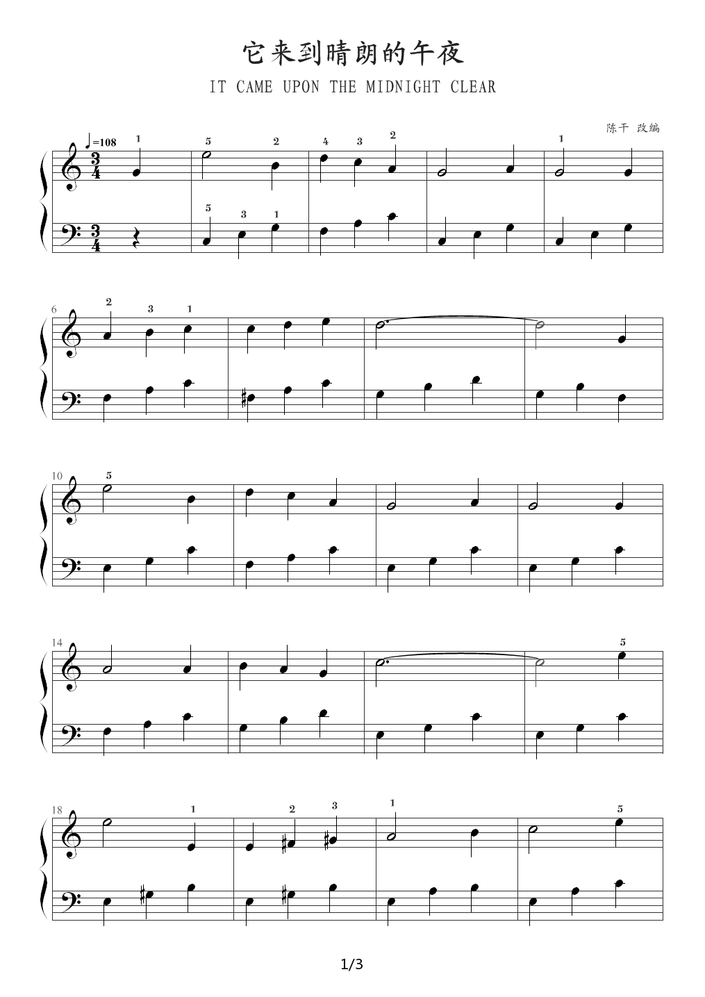 它来到晴朗的午夜 It Came Upon The Midnight Clear C调