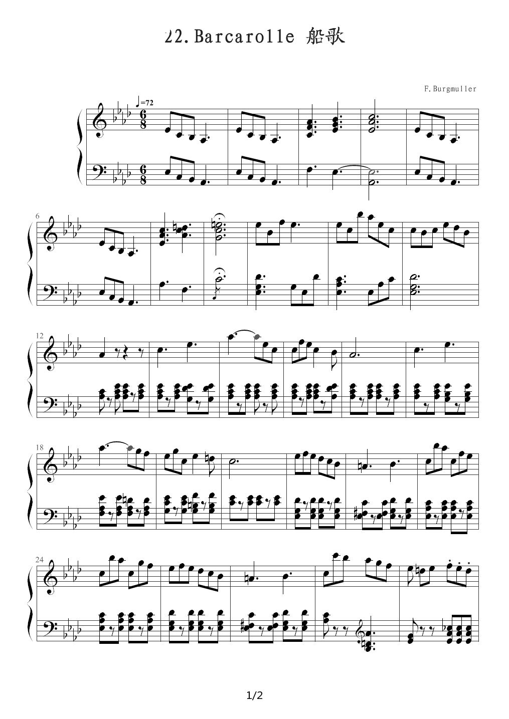 > 船歌 Barcarolle 布格缪勒钢琴进阶25曲作品100第22首 降A调
