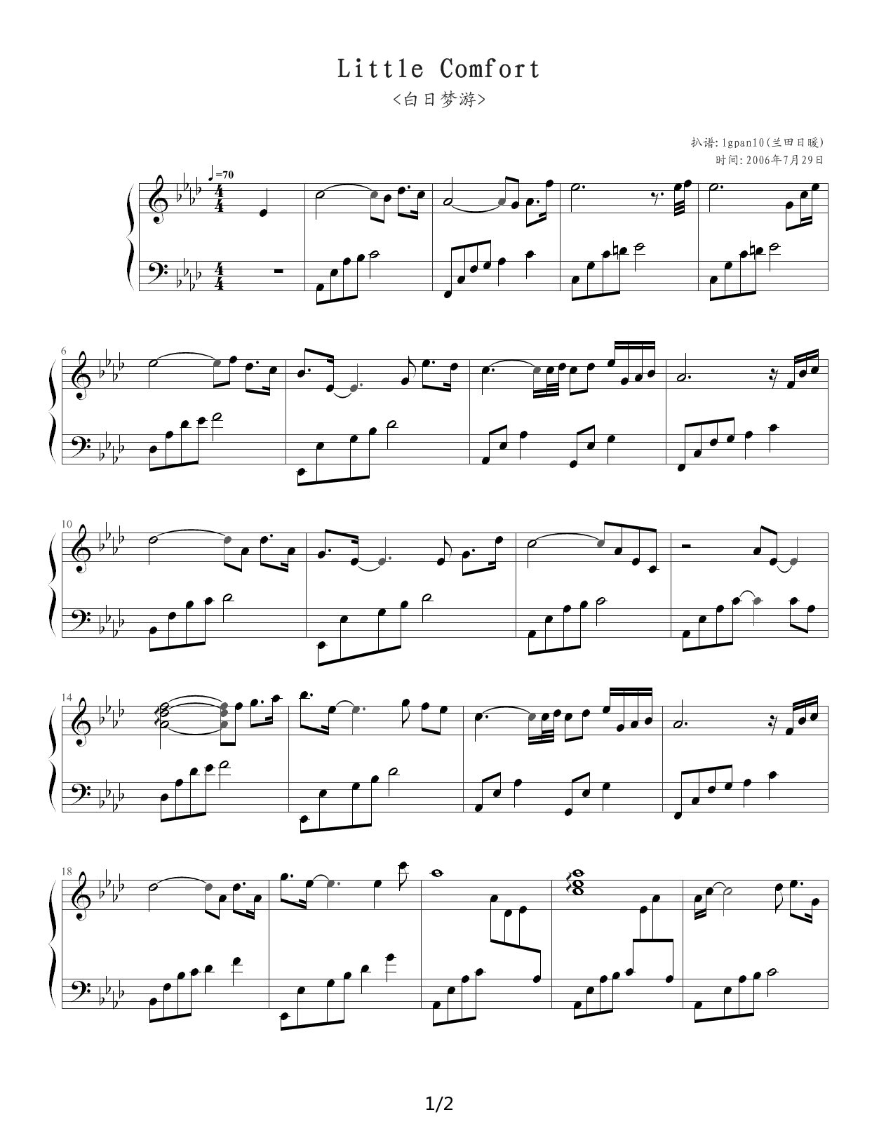 白日梦游 钢琴版 降A调