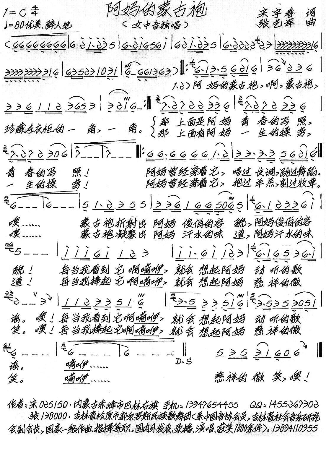 - [歌谱] 阿妈的蒙古袍 伊妮