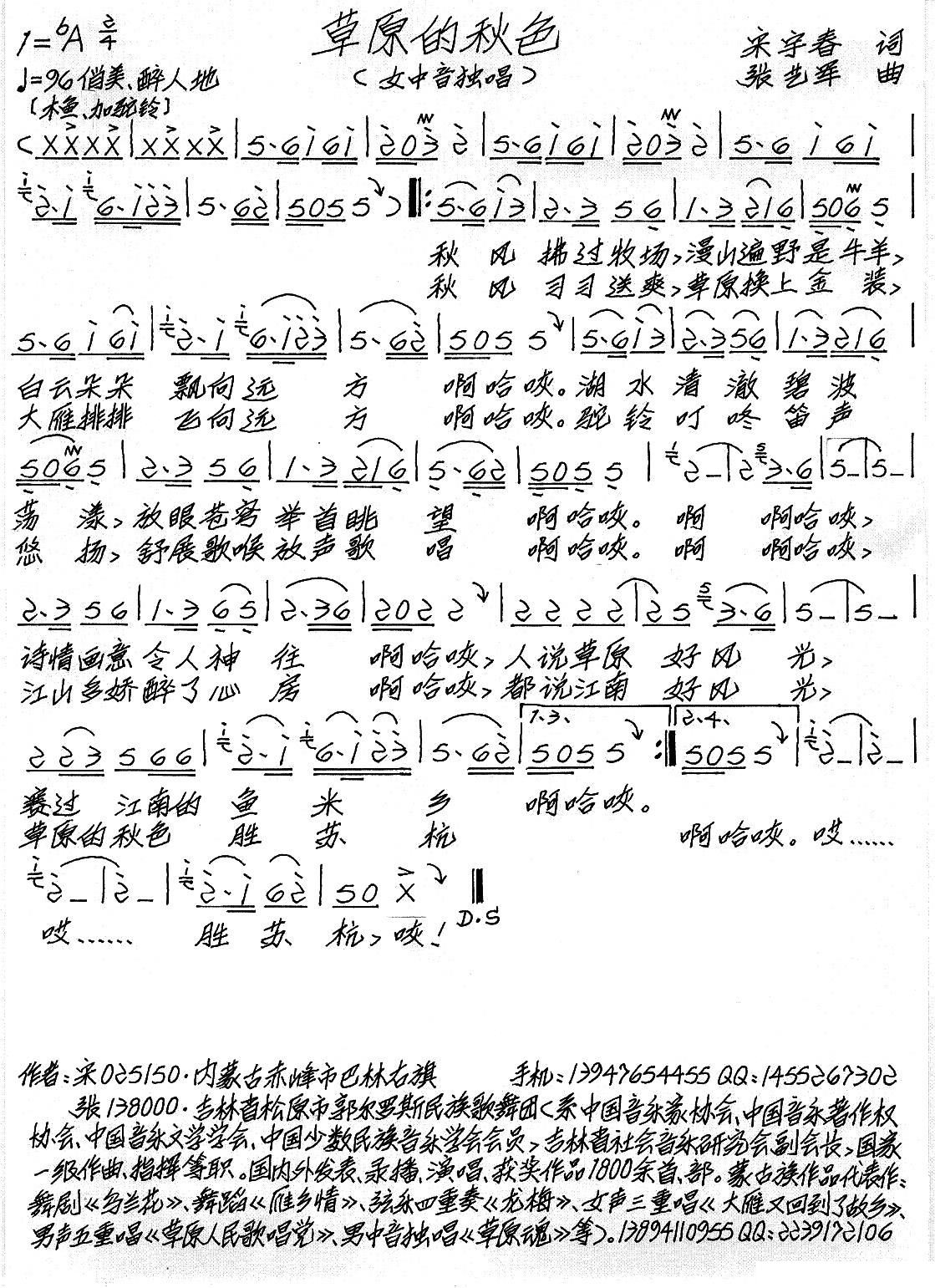 - [歌谱] 草原颂歌 孙思源 恩赫宝力高曲