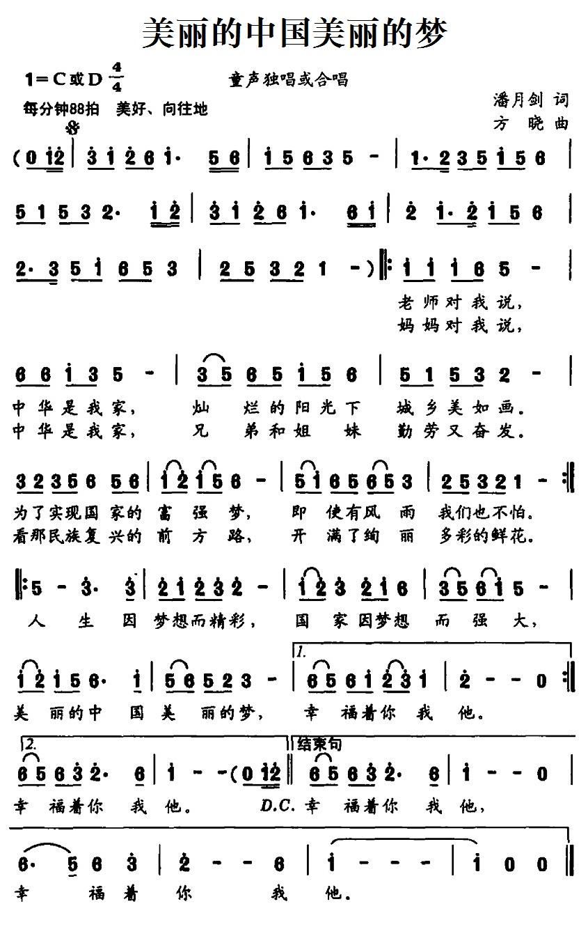 - [歌谱] 美丽的中国美丽的梦 少儿歌曲
