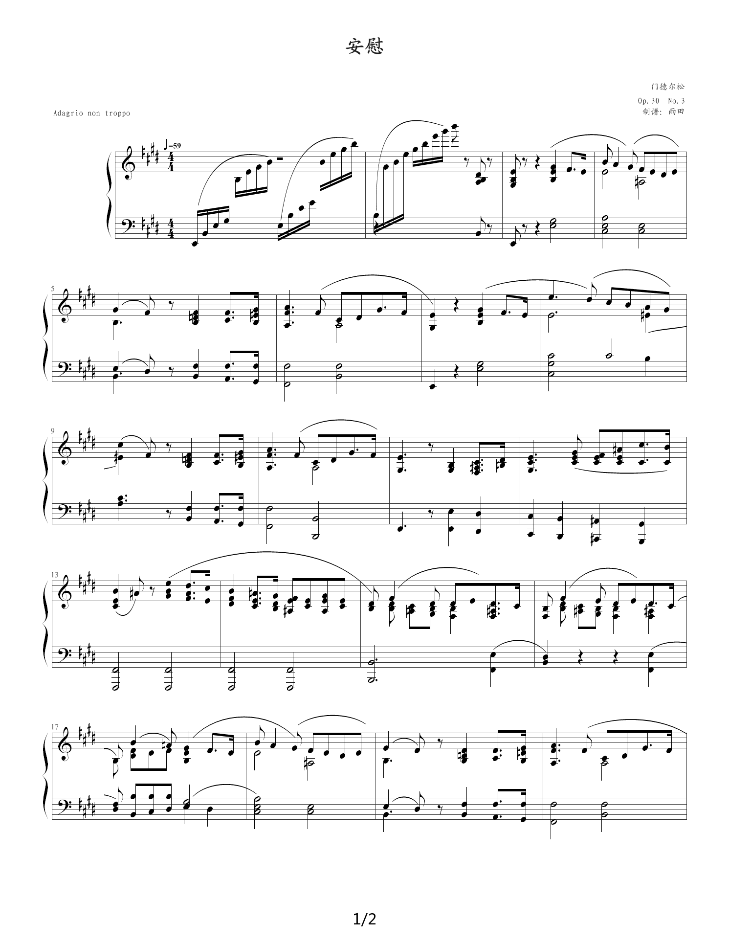 - [钢琴谱] 无词歌 安慰 Op 30 No 3