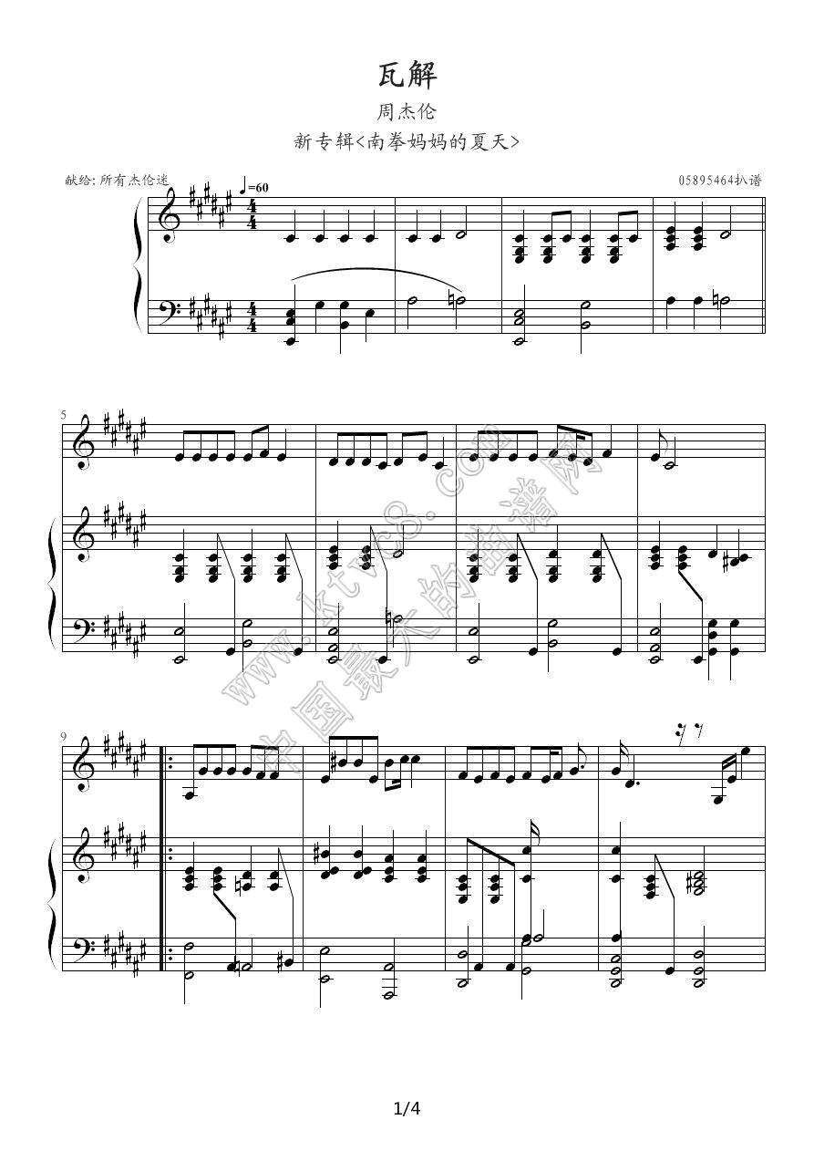 > 瓦解 钢琴伴奏谱