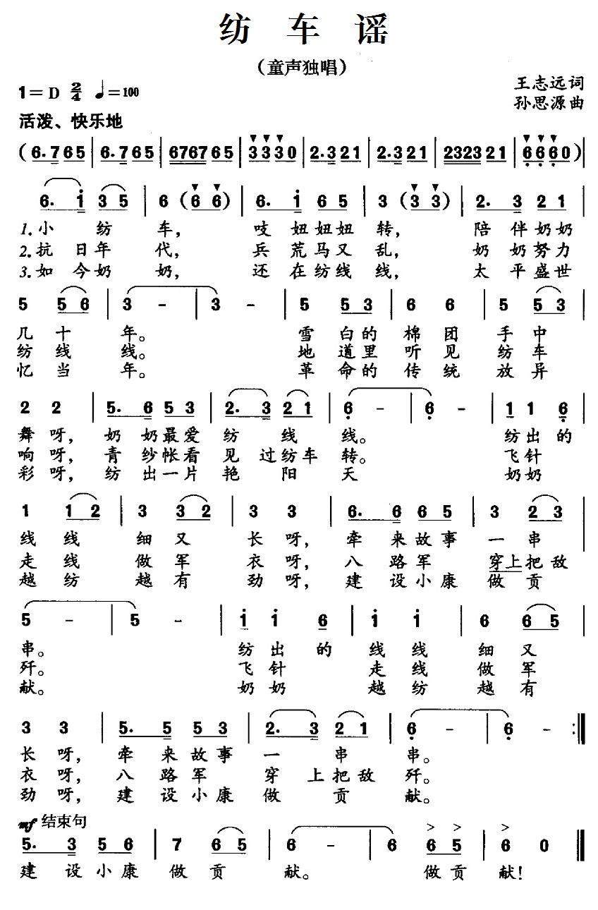 - [歌谱] 纺车谣 奚琴 民乐类 其他乐器