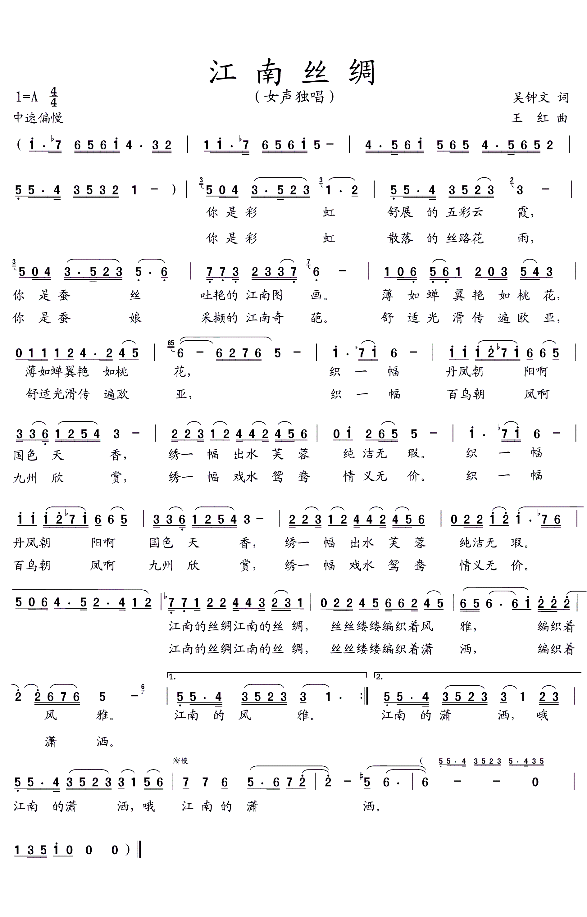 - [歌谱] 江南女孩唱江南 吴侬方言