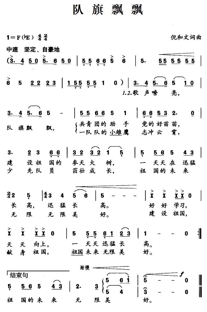 - [二胡谱,歌谱] 飞扬吧少先队旗