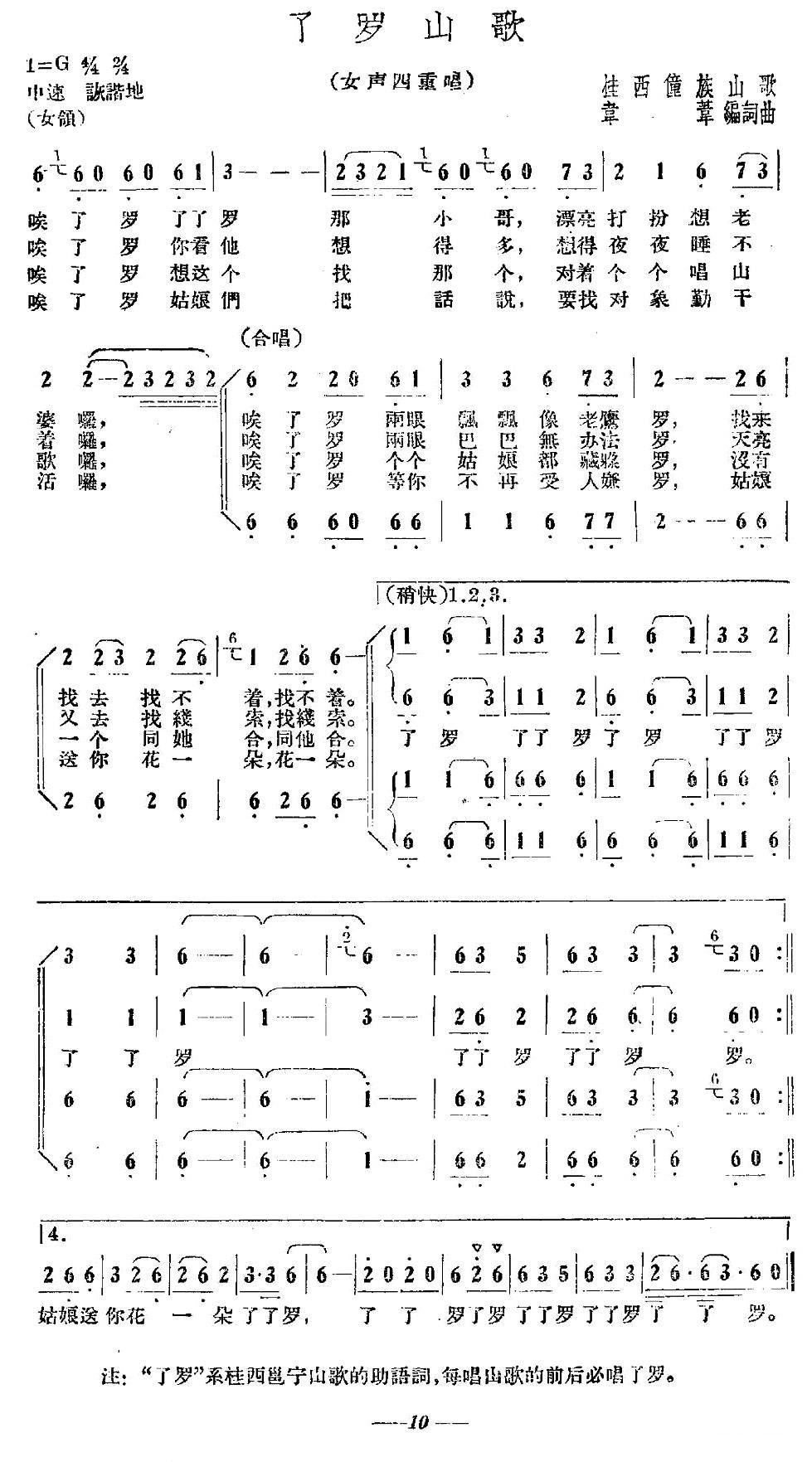 > 了罗山歌 女声四重唱