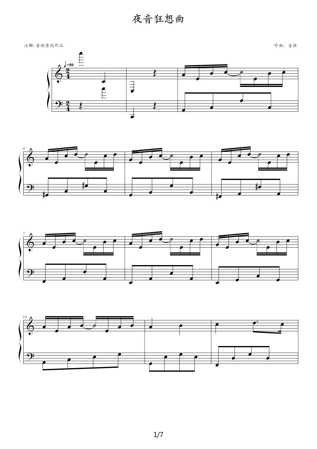 > 夜音狂想曲 C调