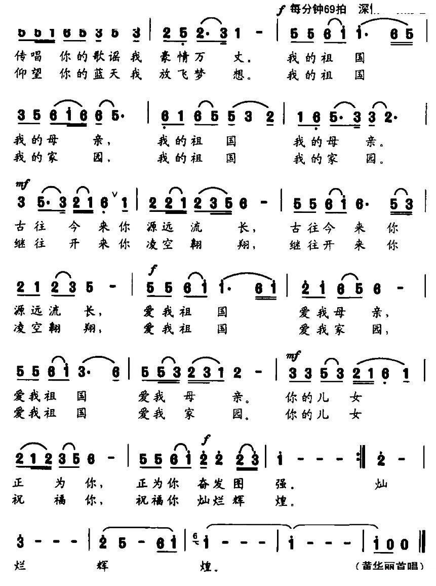 - [歌谱] 祖国恋歌