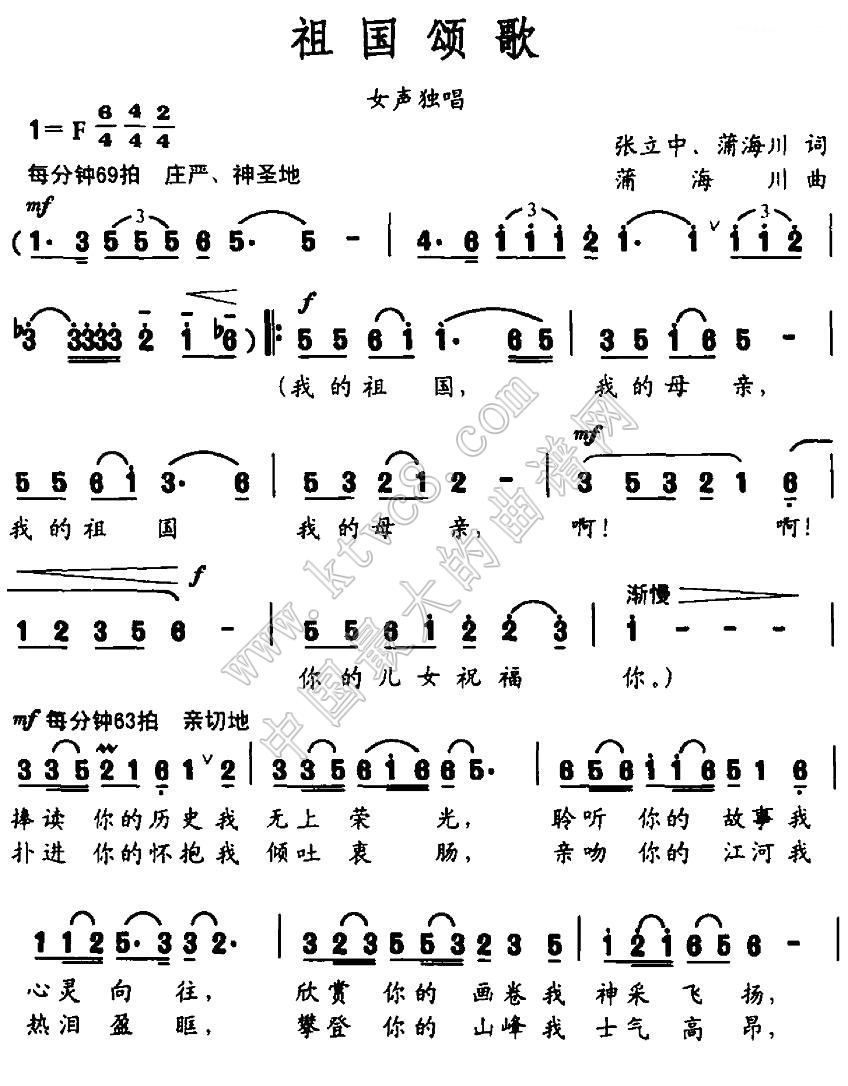 - [歌谱] 祖国颂歌