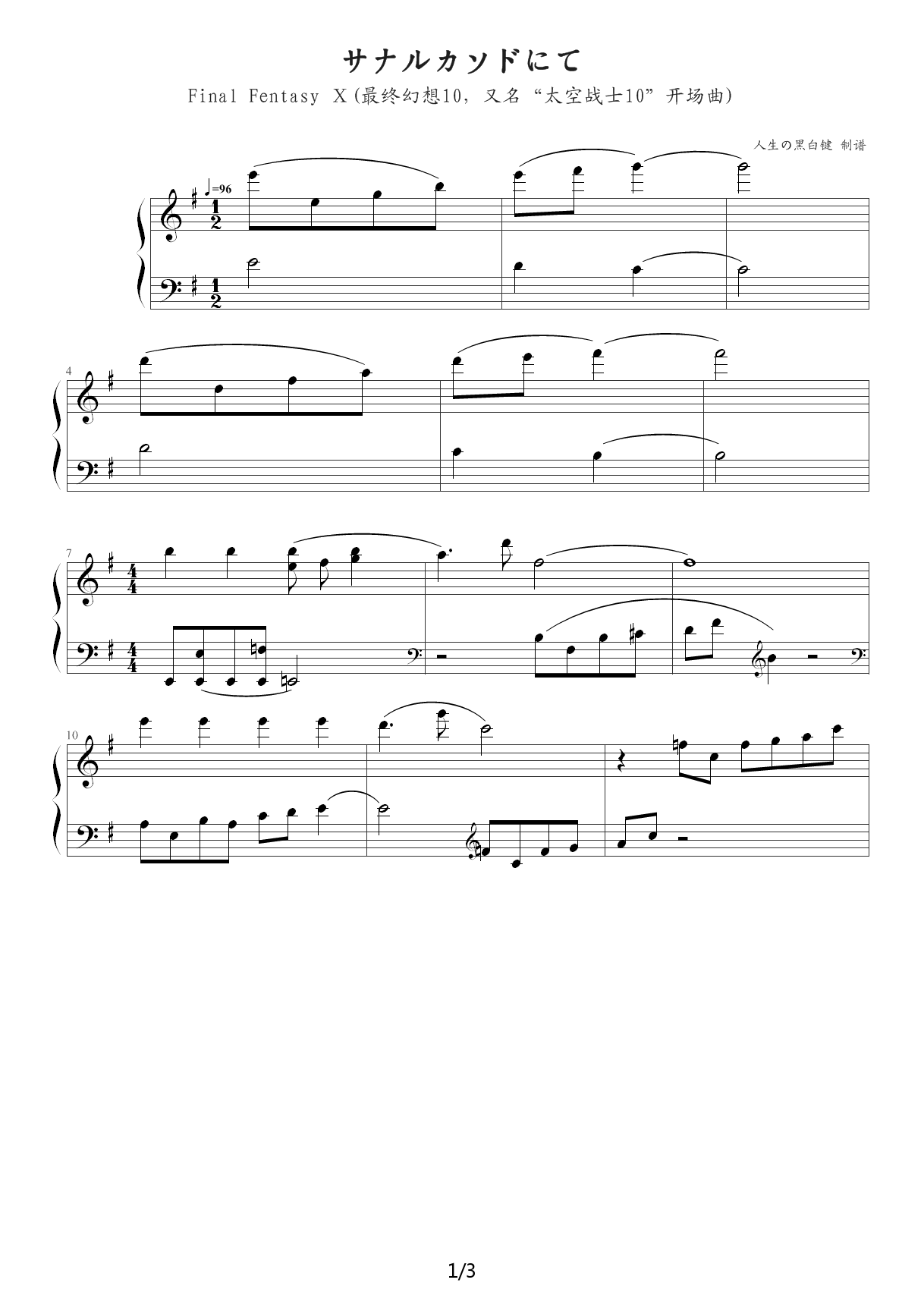 最终幻想10开场曲 官方版 G调