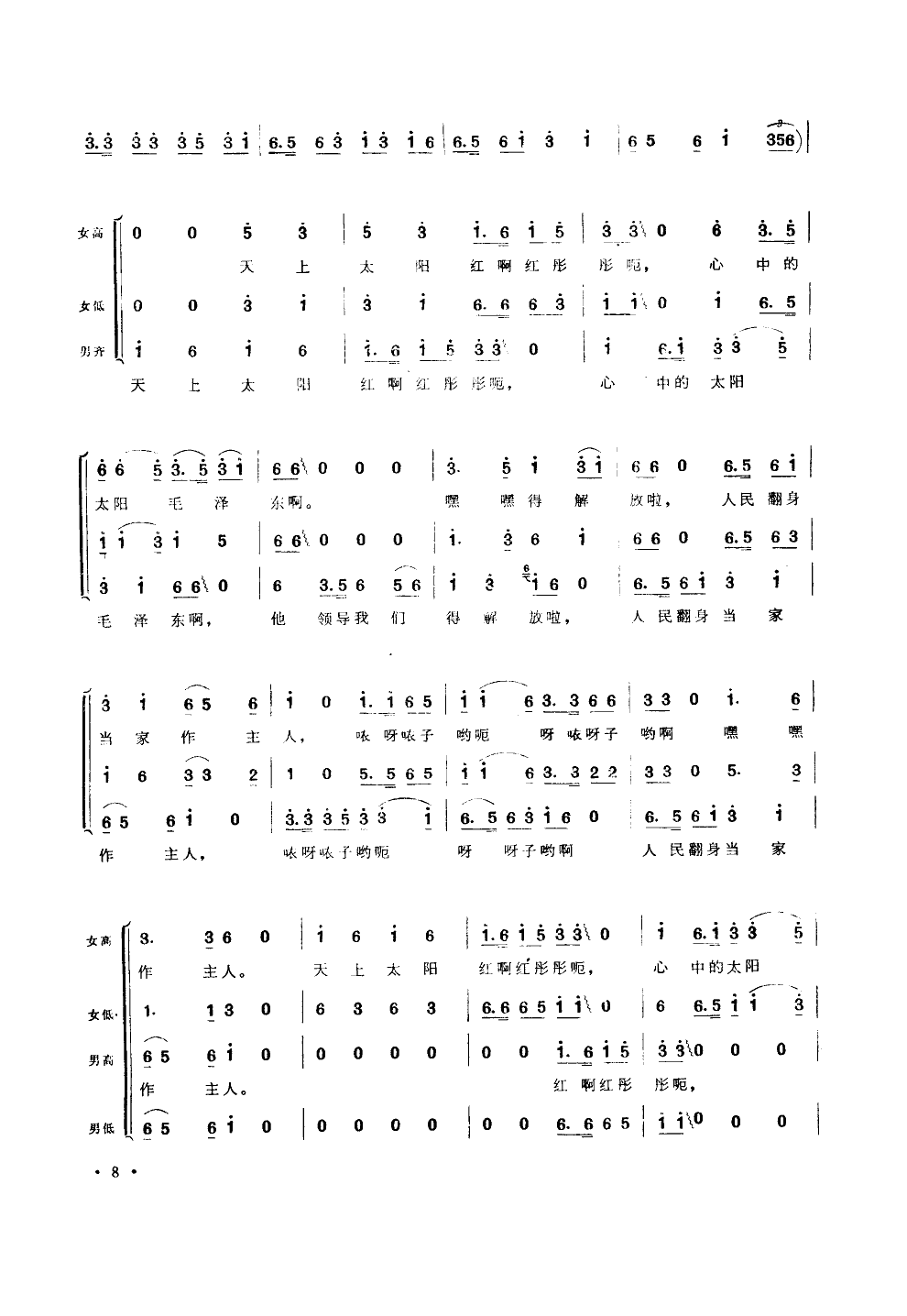 > 天上太阳红彤彤 合唱