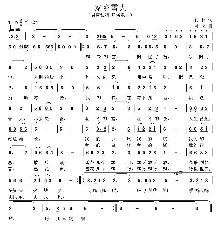- [歌谱] 故乡的雪