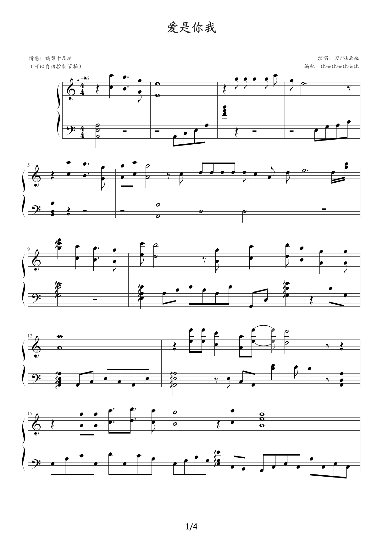 - [歌谱] 爱是你我 刀郎 云朵 王汉仪