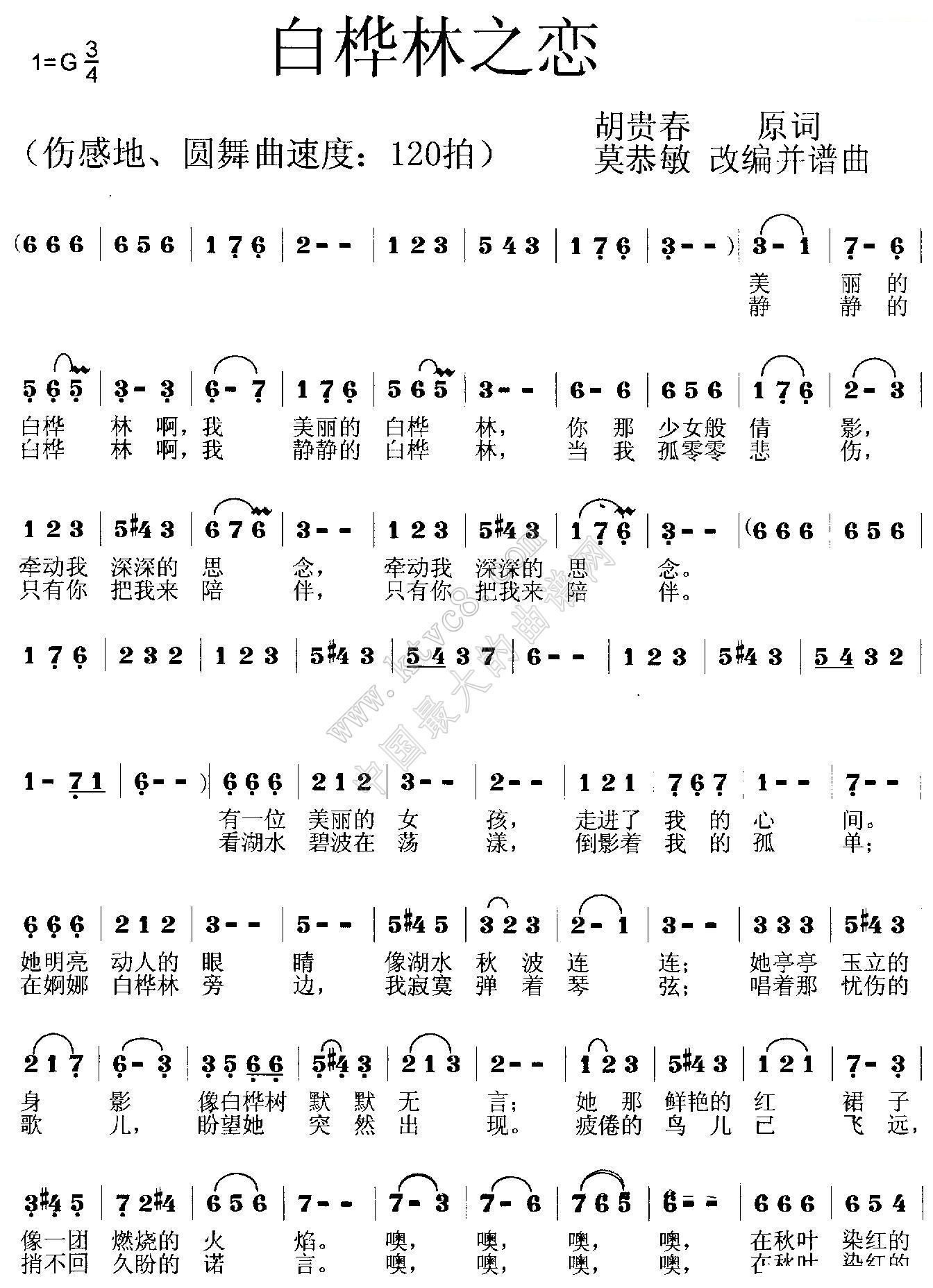 - [歌谱] 白桦林之恋
