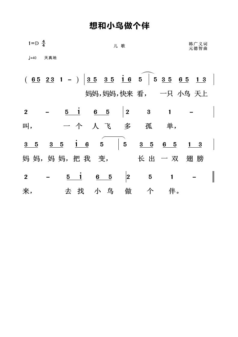 - [歌谱] 小鸟 请和我一起歌唱
