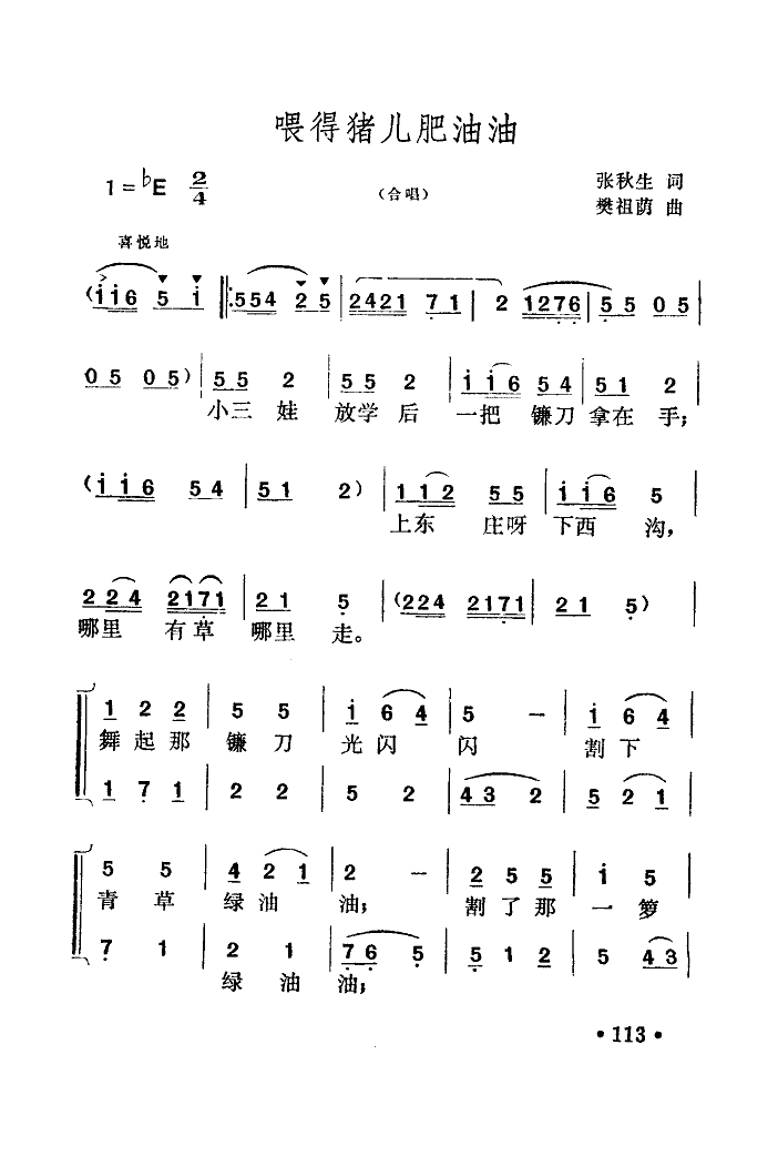 喂得猪儿肥油油 合唱
