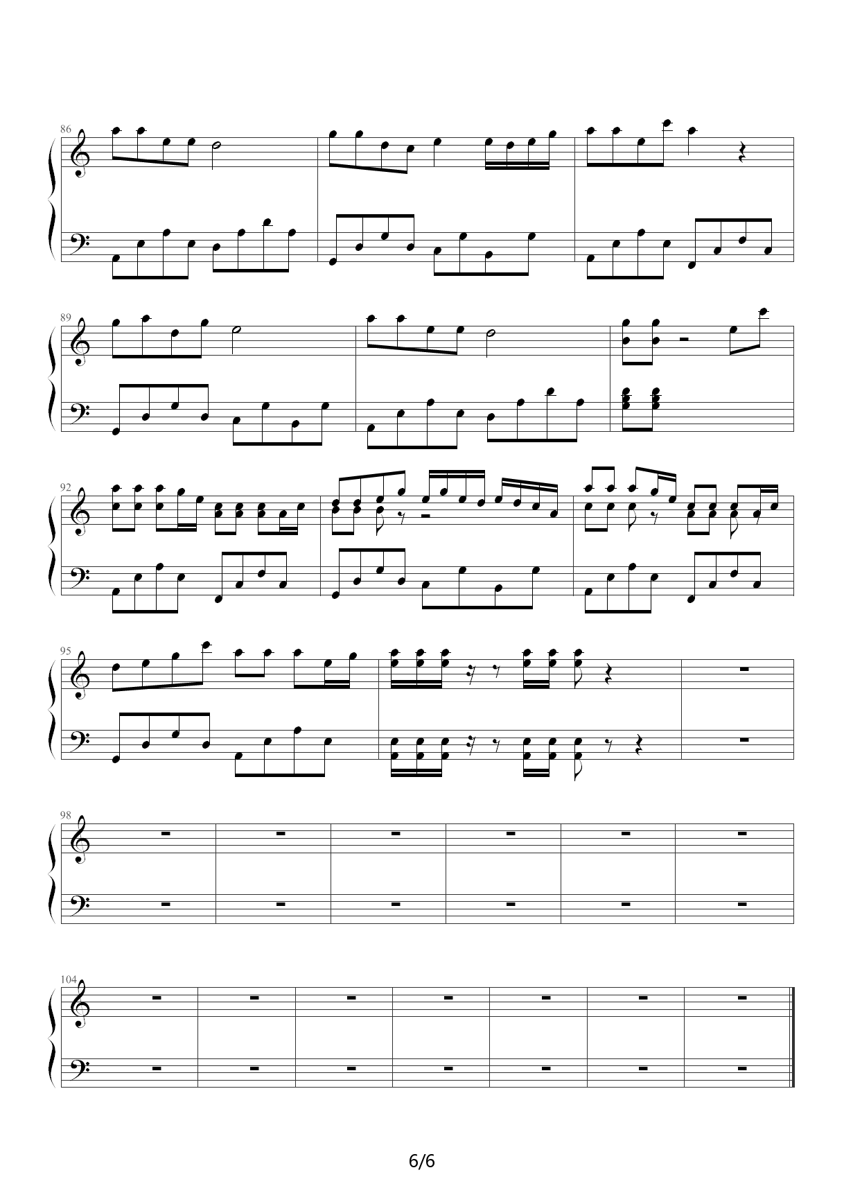 - [钢琴谱] 自由飞翔 凤凰传奇