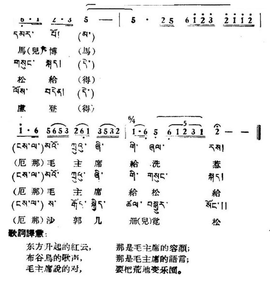 > 荒地变乐园 藏族民歌 藏文及音译版