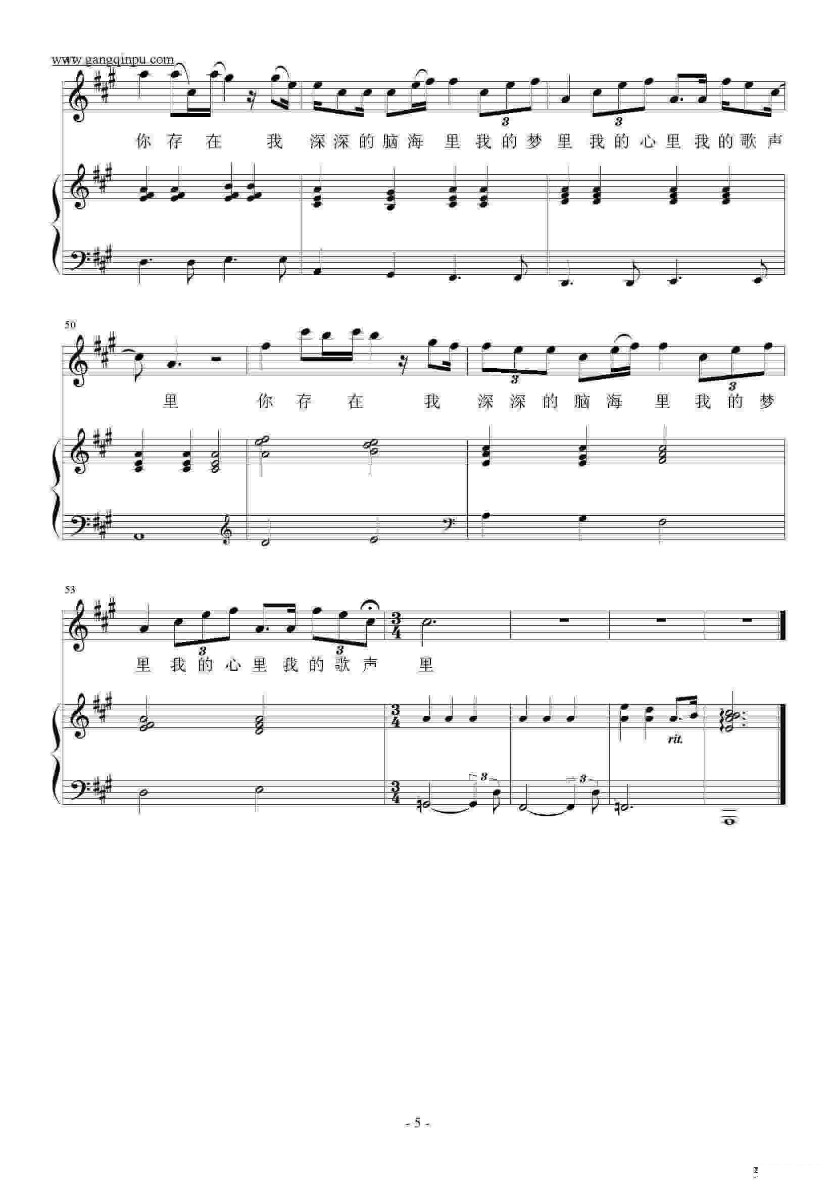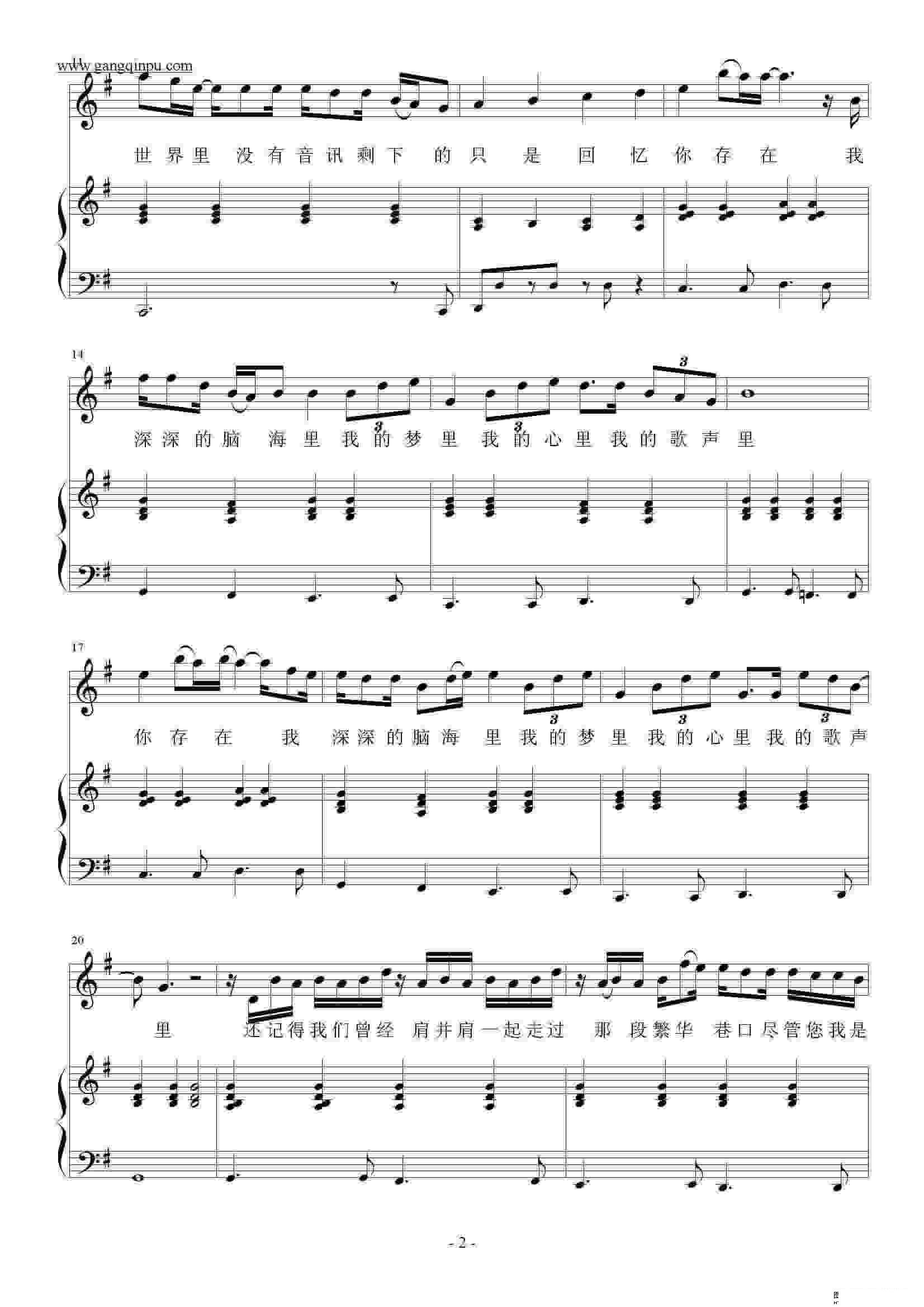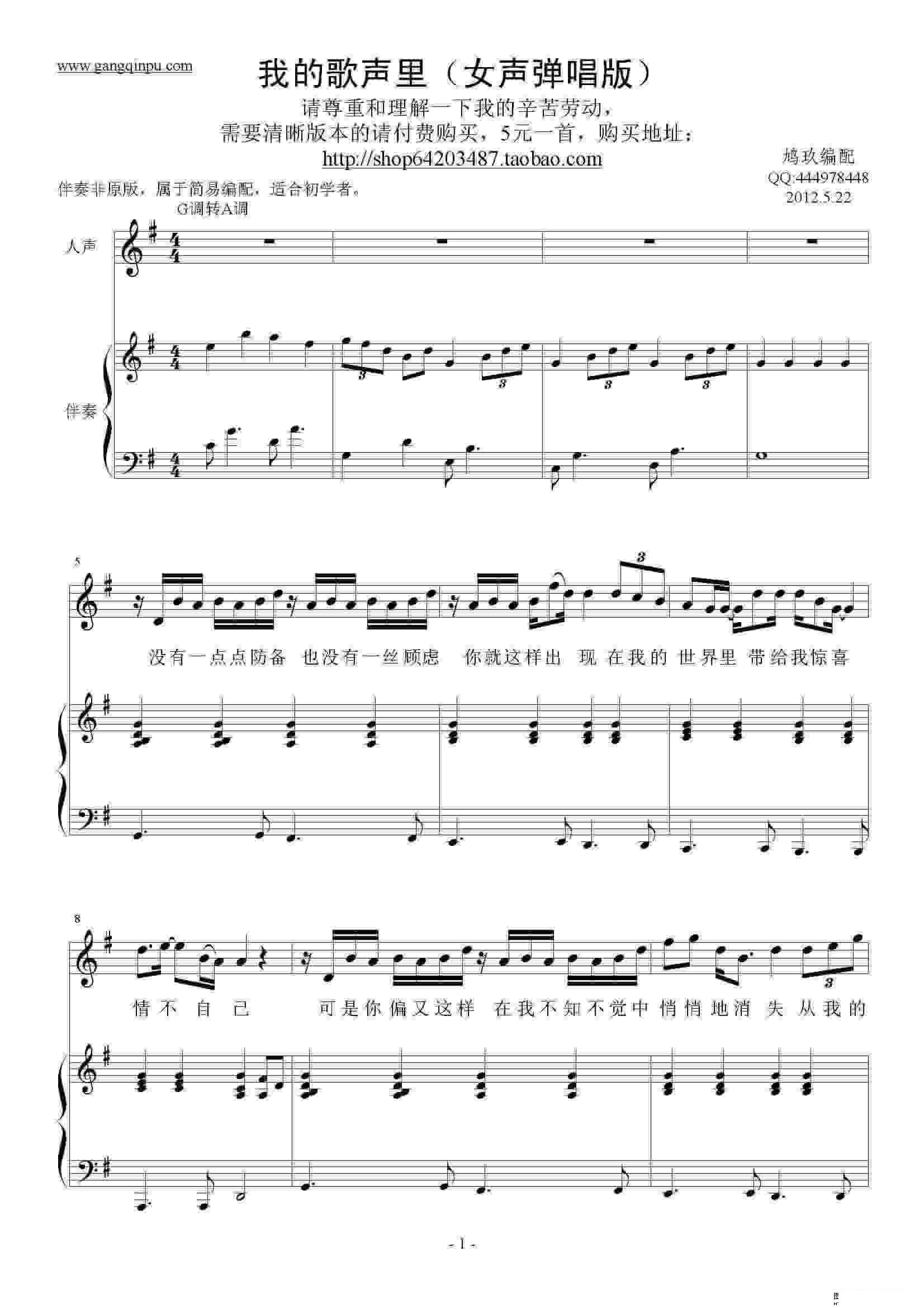 - [钢琴谱] 我的歌声里女声弹唱谱伴奏谱