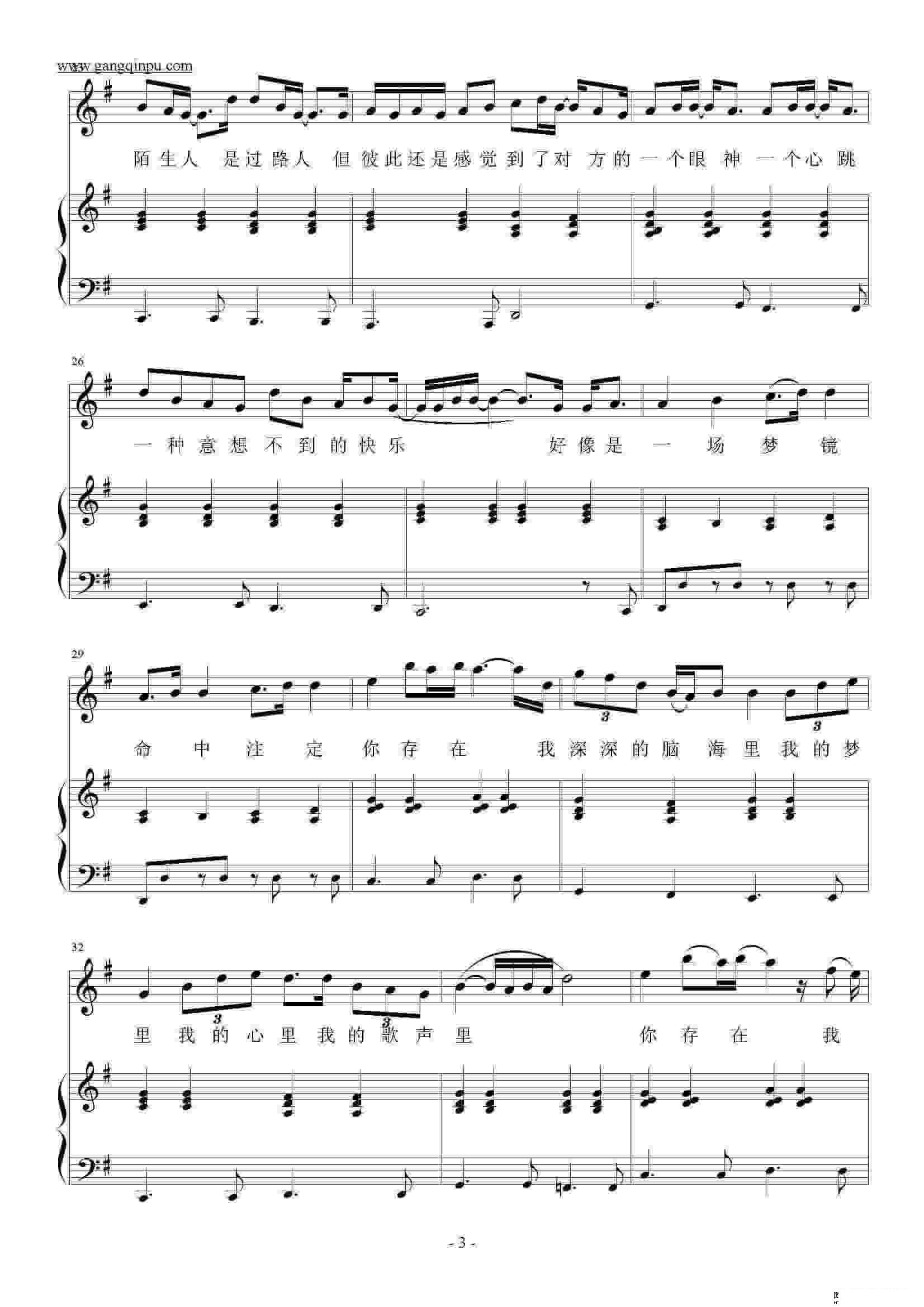 - [钢琴谱] 我的歌声里男声弹唱谱伴奏谱