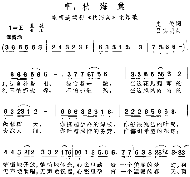 啊 秋海棠 电视连续剧 秋海棠 主题歌