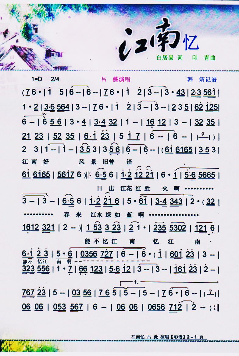 - [歌谱] 江南忆 彩谱