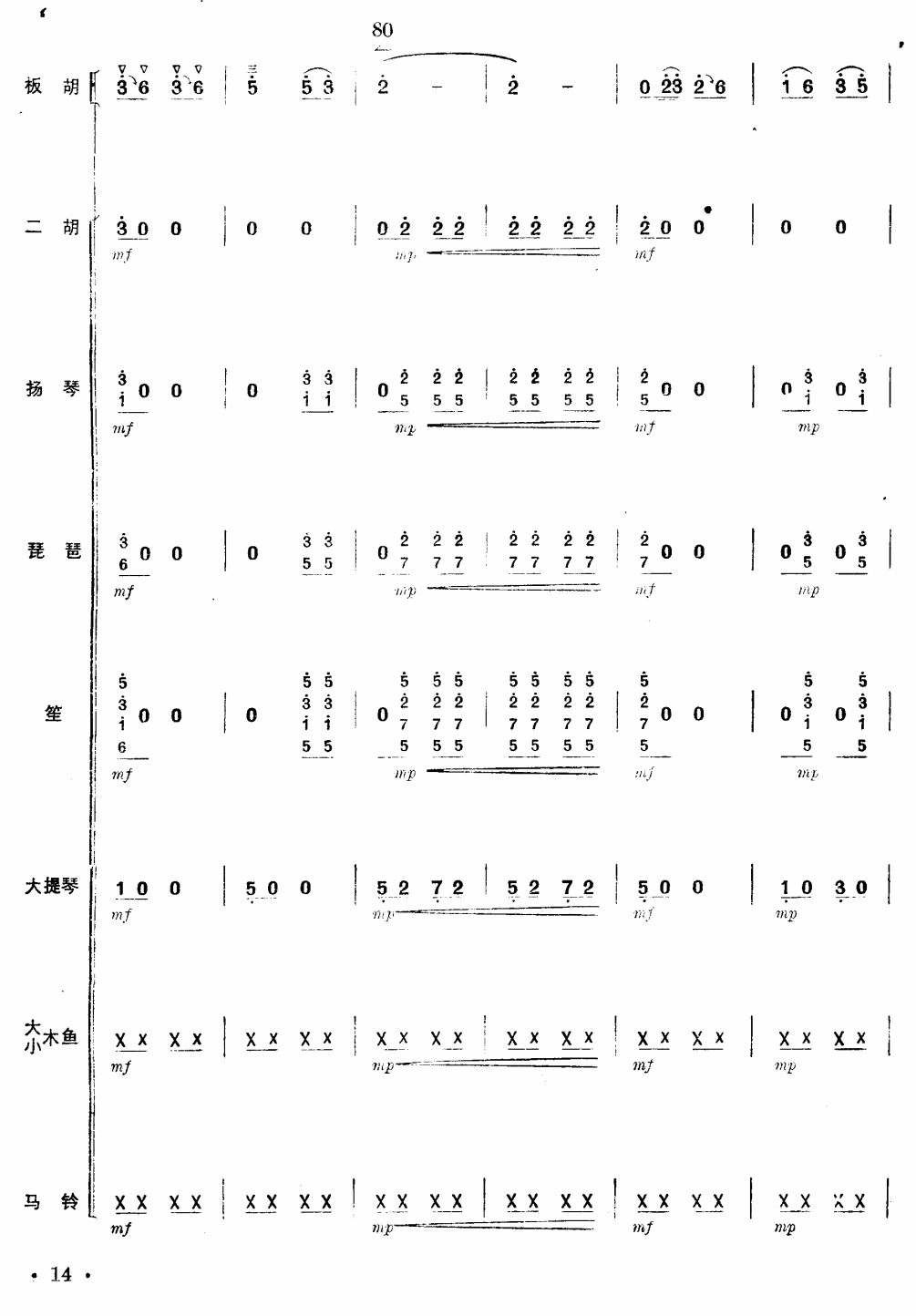 - [二胡谱,总谱] 沿着社会主义大道奔前方 板胡独奏 14