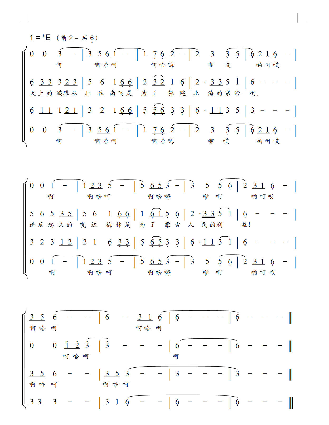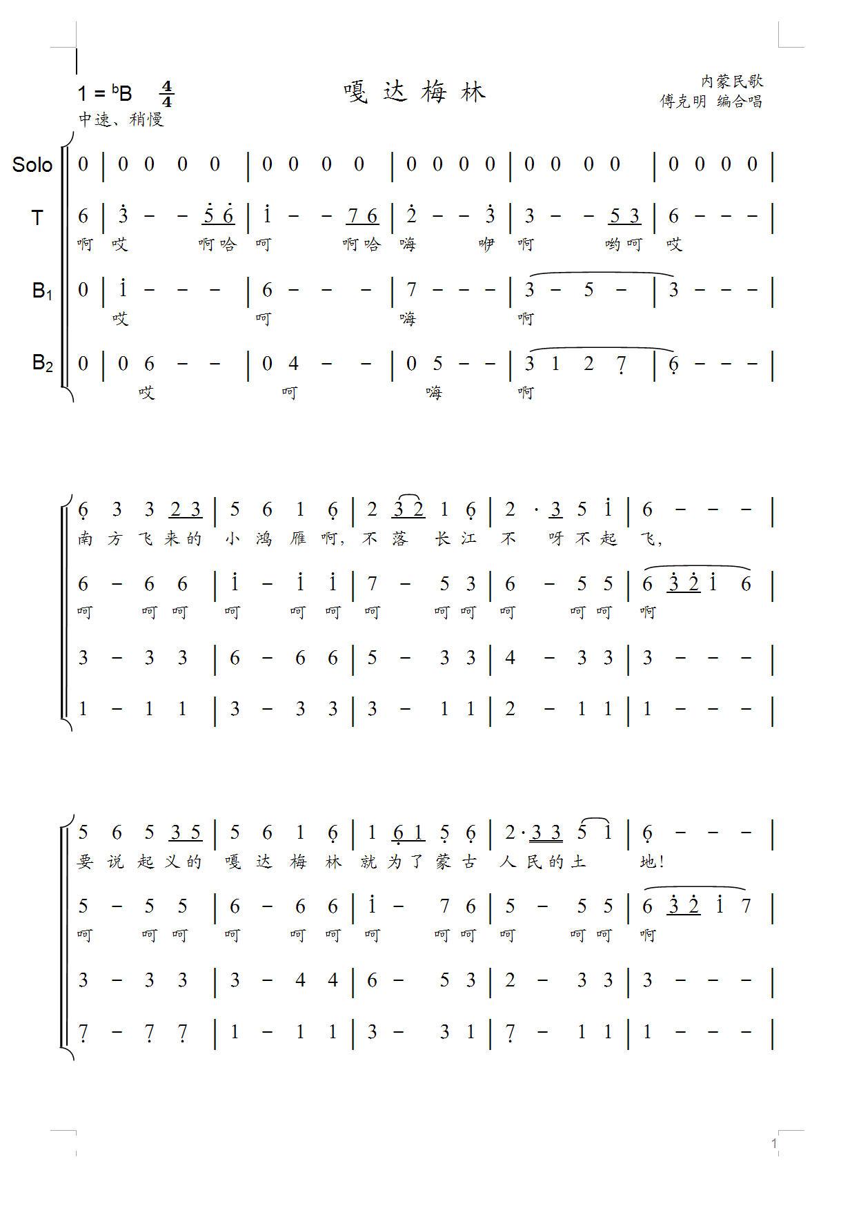 - [钢琴谱,歌谱,吉他谱] 嘎达梅林