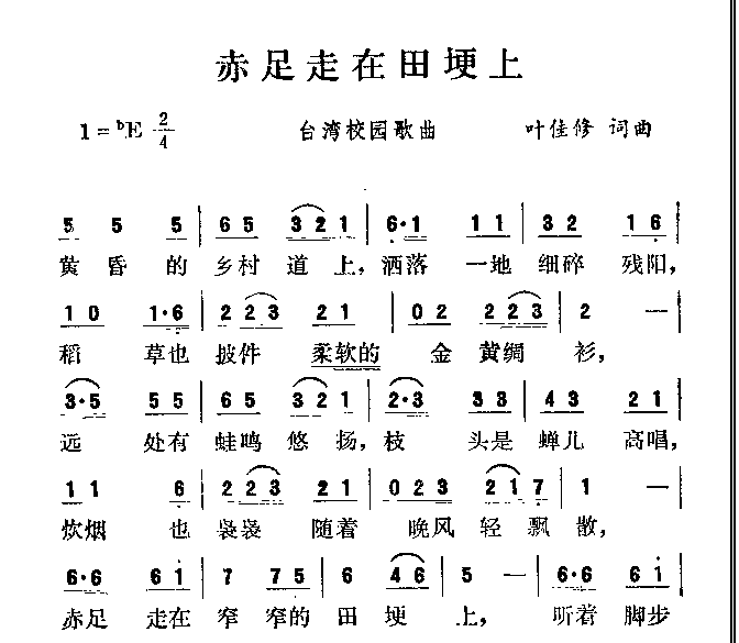 > 赤足走在田梗上