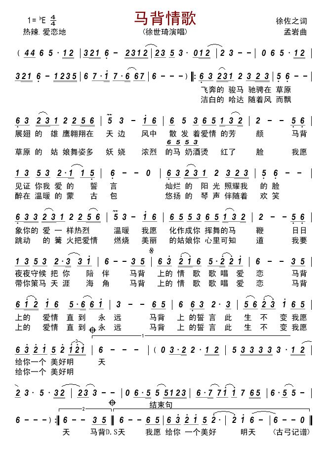 - [歌谱] 马背情歌