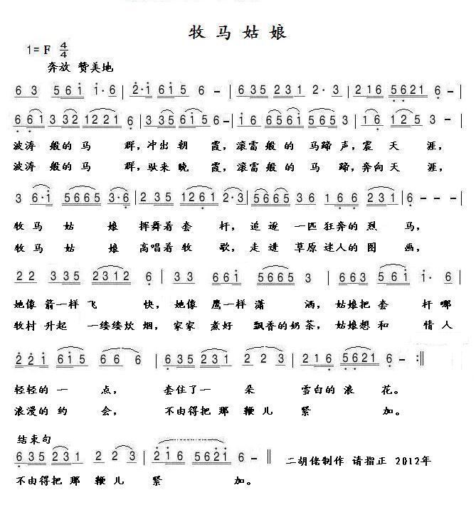 简谱网 > 歌谱 > 牧马姑娘