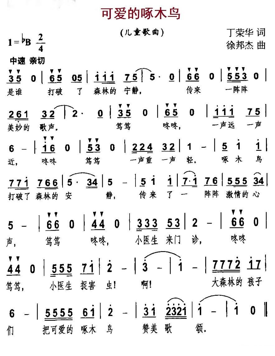 - [歌谱] 可爱的啄木鸟