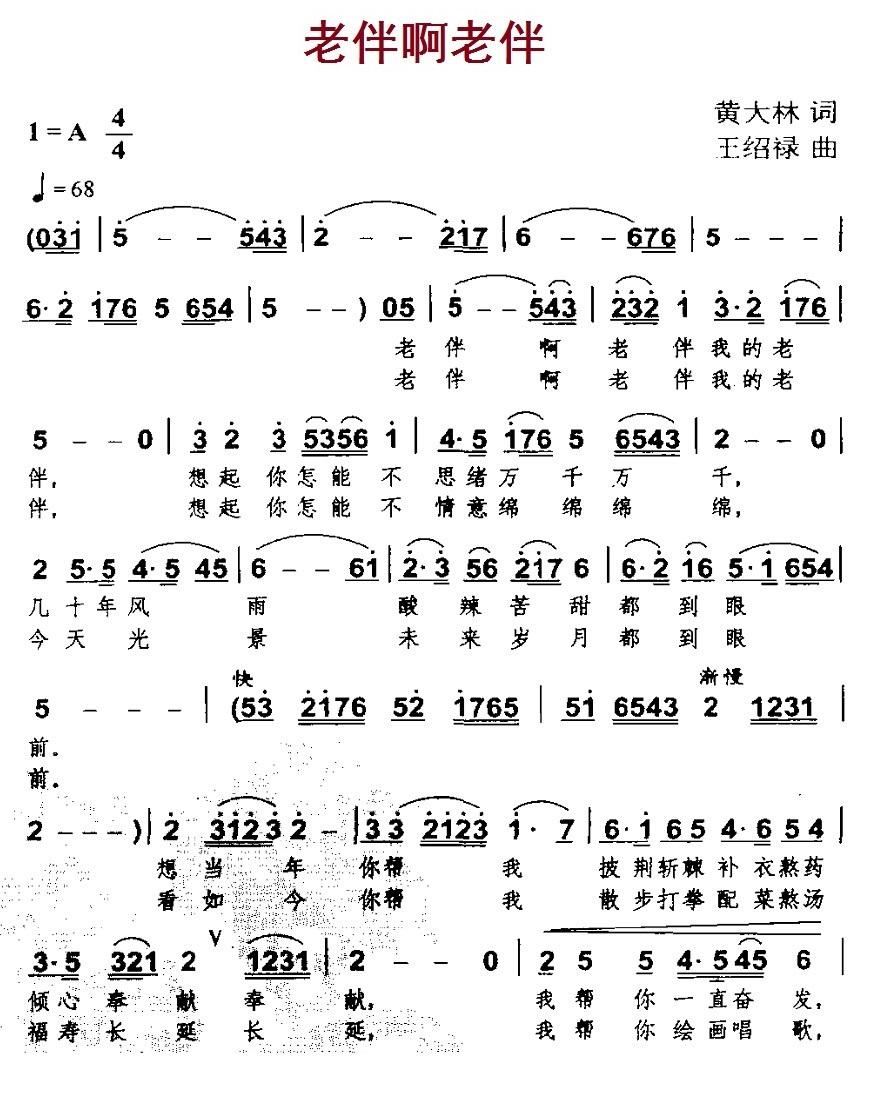 - [歌谱] 老伴啊老伴